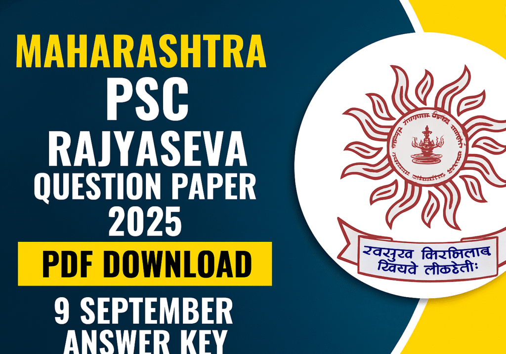 Maharashtra PSC (MPSC) Rajyaseva Prelims Question Paper 2025: PDF Download, Answer Key. MPSC Rajyaseva Prelims Question Paper & Answer Key 2025 will be released soon after the exam scheduled on November 9, 2025. The Maharashtra Public Service Commission (MPSC) conducts this exam to select candidates for various administrative services post in the state. Candidates can check all updates related to the MPSC Rajyaseva Prelims Question Paper 2025 on the official website once it is published.